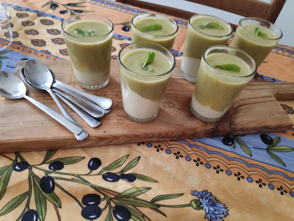 מסדרים בכוסות אישיות קצת קרם ומעליו מצקת מרק מגישים.