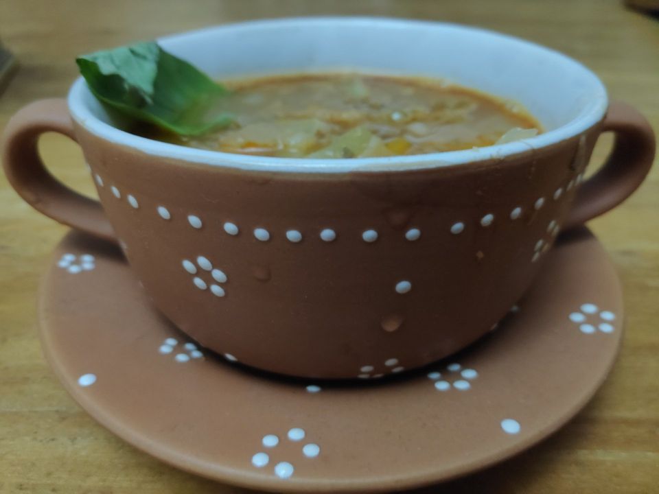 מרק ירקות שמהווה ארוחה שלמה. מכיל חתיכות של עוף, ירקות ושעועית.